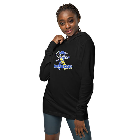 Down syndrome Sister of a Warrior LS Hooded Tee